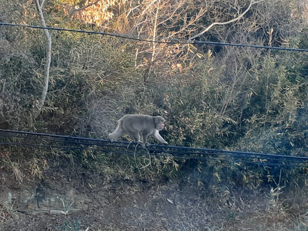 ↓内房なぎさライン(国道127号)で見かけたおサルさん。イノシシ、鹿、野ウサギ、キョンも見かけたことがあります。