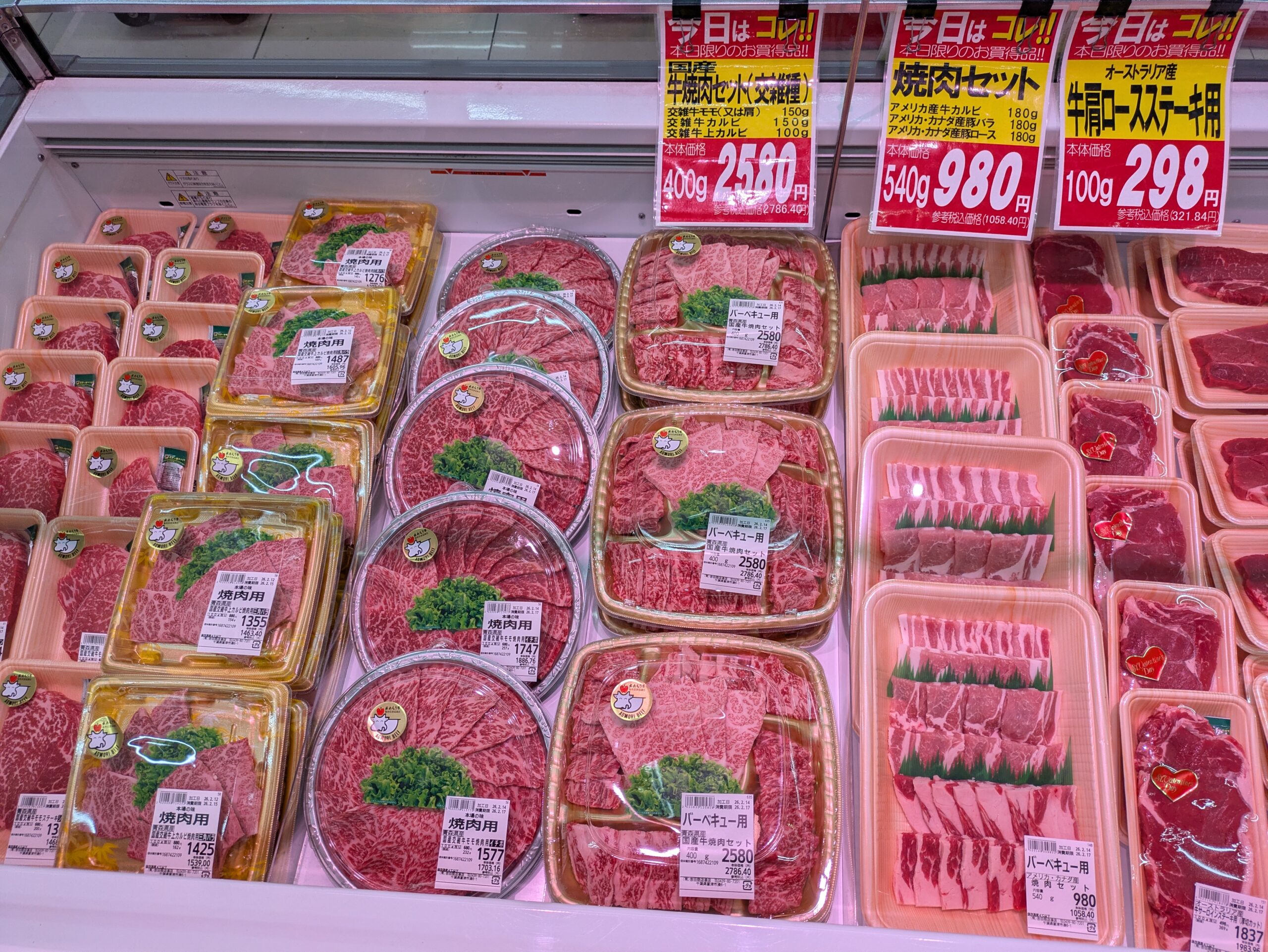 近くに今はやりのグランピング施設やキャンプ場があり、バーベキュー用食材が豊富です。肉類だけではなく魚介類も充実しています。